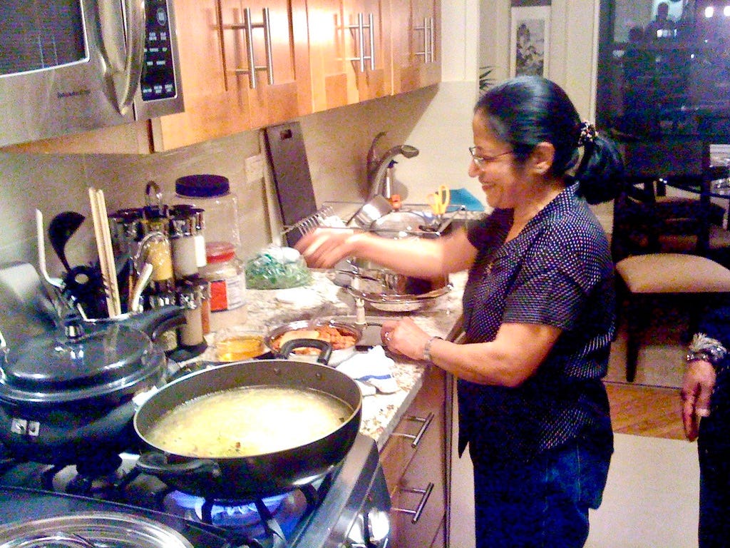 About 15 years ago I spent an afternoon cooking with Chandra. I was eager to learn how she made the elegant, subtly spiced Sindhi food she had prepared for us on several occasions. Together we made Sindhi pakoras, frying chickpea-battered vegetables not once, but twice into crisp shards. We braised fish in a luscious spinach sauce and prepared many other delicious dishes. A humble home cook, Chandra was surprised and a little embarrassed that I cared to learn what she did in the kitchen. Her food is exquisite.